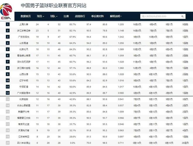 CBA排名!广东输球山东止败,上海酿40分惨案,北京终结辽宁连胜