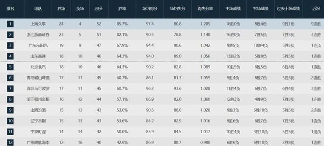 CBA排名!广东输球山东止败,上海酿40分惨案,北京终结辽宁连胜